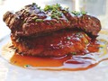 С жирным или жареным мясом идеально сочетаются ягодные и фруктовые соусы, имеющие кисло-сладкий вкус с легкой горчинкой, а также, острые томатные и горчичные соусы и пряные соусы на основе зелени с добавлением уксуса, . Если вы хотите приготовить соус сами, обратите внимание на соус барбекю, клюквенный, смородиновый, вишневый, апельсиновый, брусничный, гранатовый, чесночный и луковый мармелад.